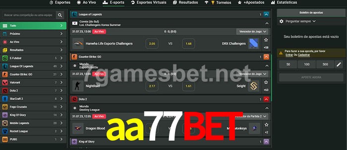 O aa77bet oferece uma grande seleção de opções de apostas em e-sports com probabilidades competitivas